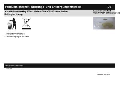 Titel: | Abreißvisiere Oakley 2000 1 Visier 6 Tear-Offs-Ersatzscheiben Brillenglas transp |