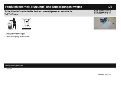 | Titel: | Brille Utopia Crossbrille Mx Enduro downhill passt an Yamaha Yz Yzf Yz-F blau |