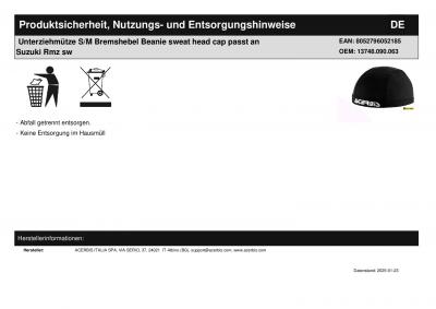 | Titel: | Unterziehmütze S/M beanie sweat head cap passt an Suzuki Rmz schwarz |