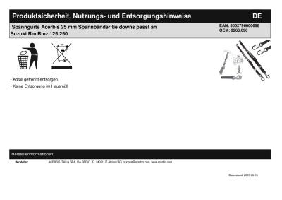 | Titel: | Spanngurte Acerbis 25 mm Spannbänder tie downs passt an Suzuki Rm Rmz 125 250 |