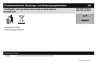 | Titel: | Ventilkappen valve cap Enduro Sumo passt an Honda passt an Kawasaki gold |