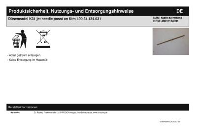 Titel: | Düsennadel K31 jet needle passt an Ktm 490.31.134.031 |