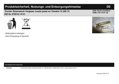 Titel: | Exciter Düsenstock Vergaser nozzle passt an Yamaha Yz 250 Yz 250 Ex 570510-14141 |