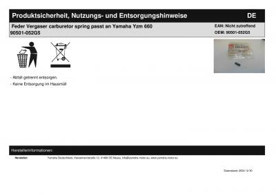 Titel: | Feder Vergaser carburetor spring passt an Yamaha Yzm 660 90501-052G5 |