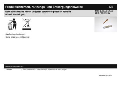| Titel: | Gemischschraube Keihin Vergaser carburetor passt an Yamaha Yzf Yz250F Yz450F ge |