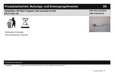 Hauptdüse 130 Düse Vergaser main jet passt an Ktm 570.31.523.130