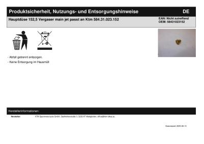 Hauptdüse 152,5 Vergaser main jet passt an Ktm 584.31.023.152