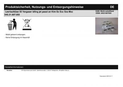 Leerlaufdüse 55 Vergaser idling jet passt an Ktm Sx Exc Sxs Mxc 545.31.607.055