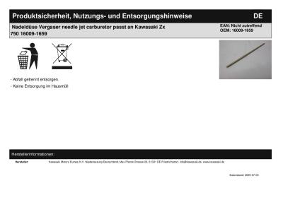Nadeldüse Vergaser needle jet carburetor passt an Kawasaki Zx 750 16009-1659