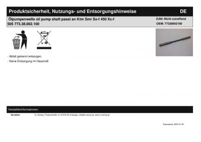 Titel: | Ölpumpenwelle oil pump shaft passt an Ktm Smr Sx-f 450 Xc-f 505 773.38.002.100 |