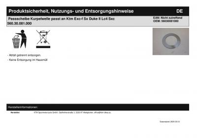 Titel: | Passscheibe Kurpelwelle passt an Ktm Exc-f Sx Duke II Lc4 Sxc 560.30.081.000 |