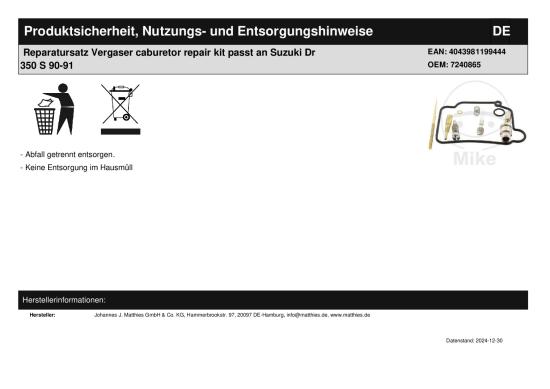 | Titel: | Reparatursatz Vergaser caburetor repair kit passt an Yamaha Xv 750 92-94 1100 |