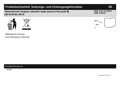 | Titel: | Reparatursatz Vergaser caburetor repair passt an Kawasaki Bj 250 94-99 En 450 Zl |