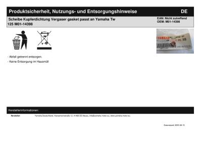 Titel: | Scheibe Kupferdichtung Vergaser gasket passt an Yamaha Tw 125 M01-14398 |
