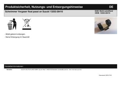 Titel: | Schwimmer Vergaser float passt an Suzuki 13252-26410 |