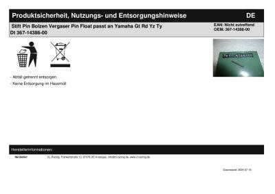 Stift Pin Bolzen Vergaser Pin Float passt an Yamaha Gt Rd Yz Ty Dt 367-14386-00