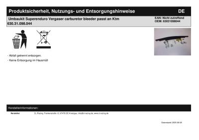 Titel: | Umbaukit Superenduro Vergaser carburetor bleeder passt an Ktm 630.31.098.044 |