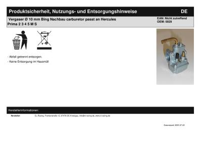 Titel: | Vergaser Ø 10 mm Bing Nachbau carburetor passt an Hercules Prima 2 3 4 5 M S |