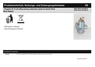 Titel: | Vergaser Ø 12 mm Bing tuning carburetor passt an Sachs Puch Mofa Moped |