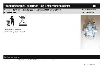 | Titel: | Vergaser 16N1-11 carburetor passt an Simson S 50 51 Schwalbe Star Habicht Sr4 |