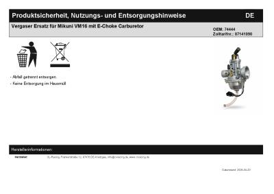 | Titel: | Vergaser Ersatz für Mikuni VM16 mit E-Choke Carburetor |