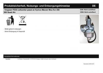 Titel: | Vergaser PZ30 carburetor passt an Kymco Maxxer Mxu Kxr 250 300 Quad Atv |