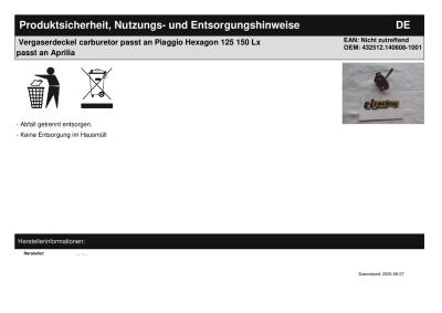 Titel: | Vergaserdeckel carburetor passt an Piaggio Hexagon 125 150 Lx passt an Aprilia |