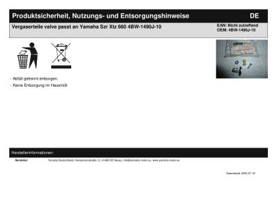 Titel: | Vergaserteile valve passt an Yamaha Szr Xtz 660 4BW-1490J-10 |