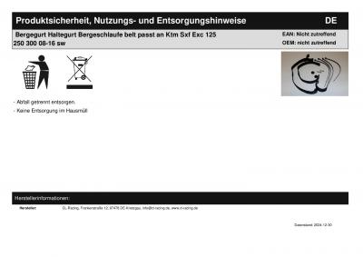 Titel: | Bergegurt Haltegurt Bergeschlaufe belt passt an Ktm Sxf Exc 125 250 300 08-16 sw |