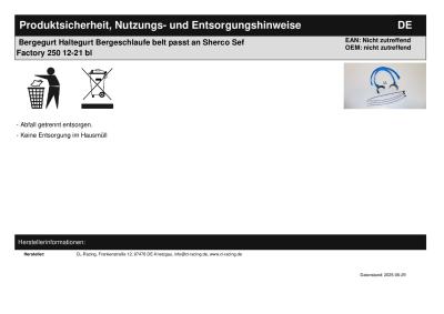 Titel: | Bergegurt Haltegurt Bergeschlaufe belt passt an Sherco Sef Factory 250 12-21 bl |