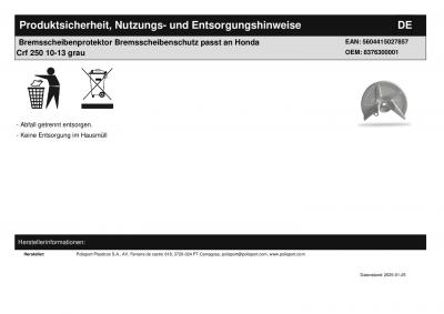 Titel: | Bremsscheibenprotektor Bremsscheibenschutz passt an Honda Crf 250 10-13 grau |