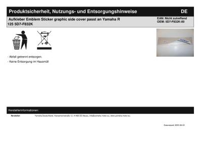 | Titel: | Aufkleber Emblem Sticker graphic side cover passt an Yamaha R 125 5D7-F832K |