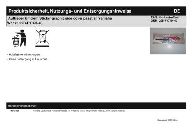 | Titel: | Aufkleber Emblem Sticker graphic side cover passt an Yamaha Wr 125 22B-F174H-40 |