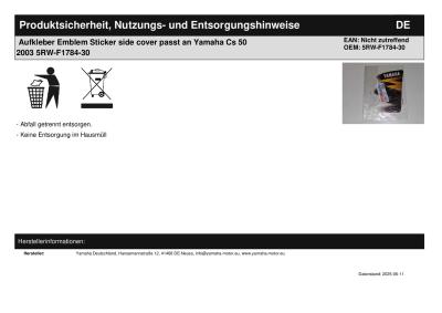 | Titel: | Aufkleber Emblem Sticker side cover passt an Yamaha Cs 50 2003 5RW-F1784-30 |