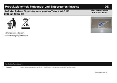 | Titel: | Aufkleber Emblem Sticker side cover passt an Yamaha Yzf-R 125 2009 5D7-F836C-R0 |