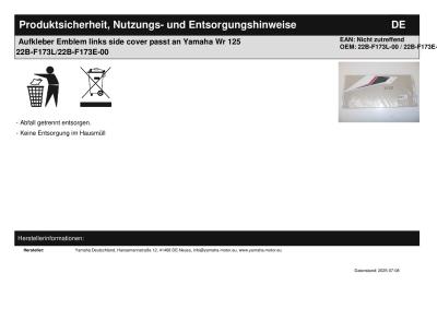| Titel: | Aufkleber Emblem links side cover passt an Yamaha Wr 125 22B-F173L/22B-F173E-00 |