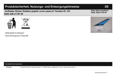 | Titel: | Aufkleber Sticker Emblem graphic cover passt an Yamaha Wr 125 2009 22B-2173F-00 |
