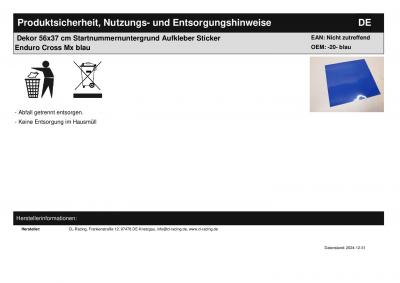 | Titel: | Dekor 56x37 cm Startnummernuntergrund Aufkleber Sticker Enduro Cross Mx blau |