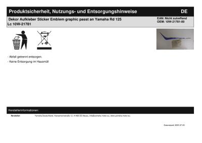| Titel: | Dekor Aufkleber Sticker Emblem graphic passt an Yamaha Rd 125 Lc 10W-21781 |