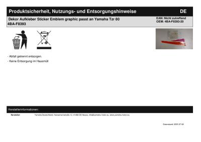 | Titel: | Dekor Aufkleber Sticker Emblem graphic passt an Yamaha Tzr 80 4BA-F8393 |