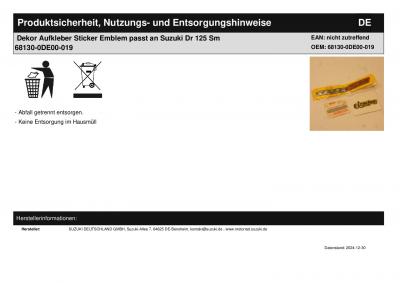 | Titel: | Dekor Aufkleber Sticker Emblem passt an Suzuki Dr 125 Sm 68130-0DE00-019 |