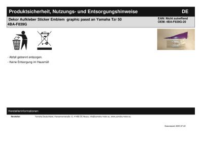 | Titel: | Dekor Aufkleber Sticker Emblem graphic passt an Yamaha Tzr 50 4BA-F839G |
