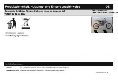 | Titel: | Dekorsatz Aufkleber Sticker Sitzbezug passt an Yamaha Yzf Yz450f 06-08 sw-blau |