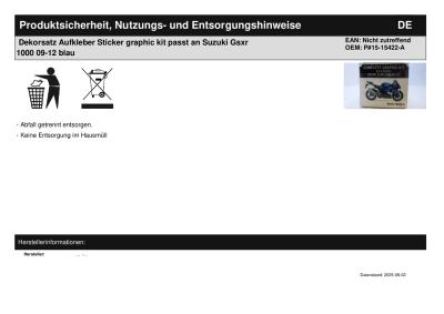 | Titel: | Dekorsatz Aufkleber Sticker graphic kit passt an Suzuki Gsxr 1000 09-12 blau |
