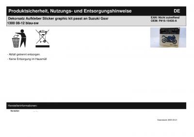 | Titel: | Dekorsatz Aufkleber Sticker graphic kit passt an Suzuki Gsxr 1300 08-12 blau-sw |