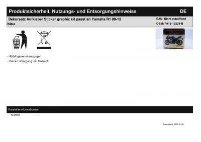 | Titel: | Dekorsatz Aufkleber Sticker graphic kit passt an Yamaha R1 09-12 blau |