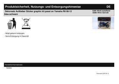 | Titel: | Dekorsatz Aufkleber Sticker graphic kit passt an Yamaha R6 08-12 blau-schwarz |