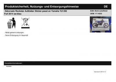 | Titel: | Dekorsatz Rockstar Aufkleber Sticker passt an Yamaha Yzf 250 Full 2014 sw-blau |