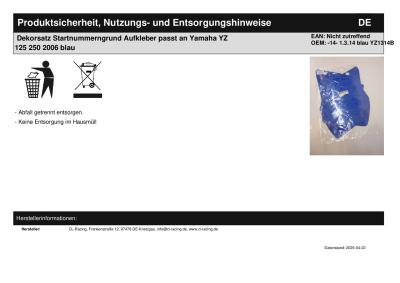 | Titel: | Dekorsatz Startnummerngrund Aufkleber passt an Yamaha YZ 125 250 2006 blau |