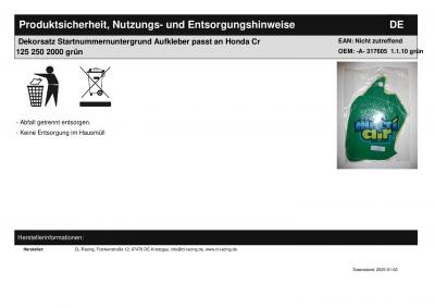 | Titel: | Dekorsatz Startnummernuntergrund Aufkleber passt an Honda Cr 125 250 2000 grün |